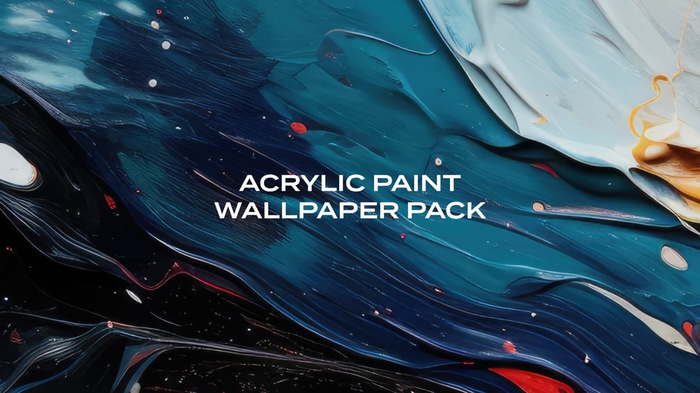 The Acrylic Paint wallpaper pack, featuring 17 different desktop and 15 different mobile wallpapers, going up to a whopping 6K resolution. Each wallpaper has a unique mix of acrylic paint design with some color variations. They look great on both desktop and mobile.